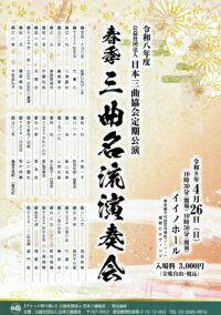 令和8年4月26日(日)に千代田区イイノホールで行われる「令和八年度春季三曲名流演奏会」に花橘会の一員として出演します。...